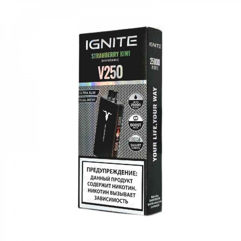 Электронная сигарета Ignite V250 Black 25000 - Strawberry Kiwi (Клубника киви) - купить в Приозерске